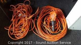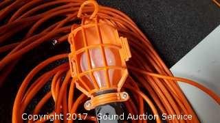 Lot #0098: (2) 50 ft Extension Cords & Drop Light
