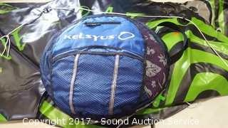 One is Kelsyus collapsible raft with case. 2 are inflatable River Rat rafts. Pump has 12 volt car lighter plug.