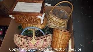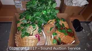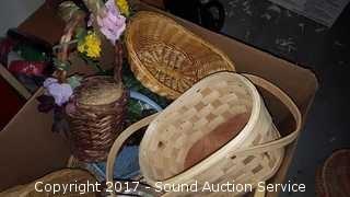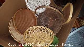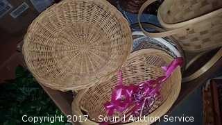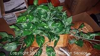 Lot #0151: Huge Lot of Wicker Woven Baskets & Silk Ivy Plant