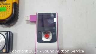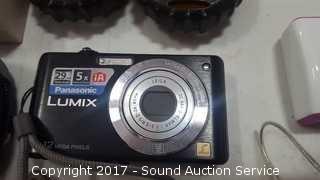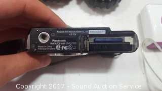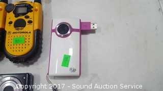 Includes: Flip Video camera, Panasonic Lumix 12 MP digital camera with case (battery cover is broken, no cable), Arrow View slide viewer.