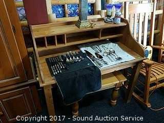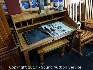 Lot #0013: Single Drawer Oak Desk w/Built in Shelf