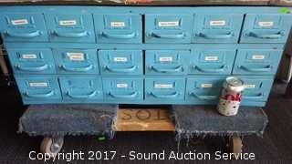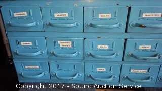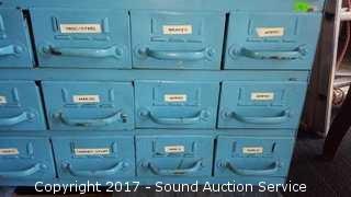 Lot #0118: Vtg. 18 Drawer Metal Organizer Cabinet
