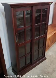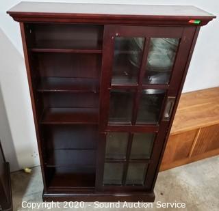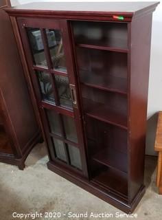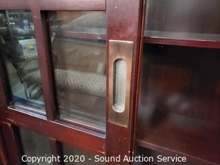 Lot #0036: 4-Tier Dark Stained Sliding Door Curio Cabinet