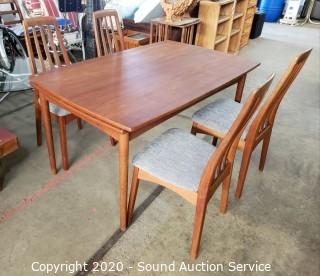 Lot #0001: Mid-Century Modern Teak Dining Table & w/4 Chairs