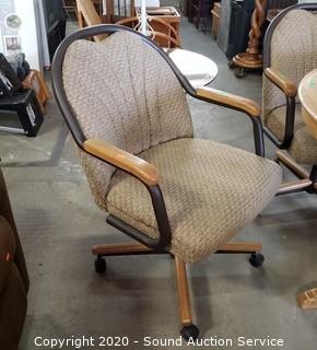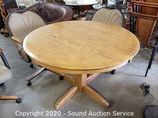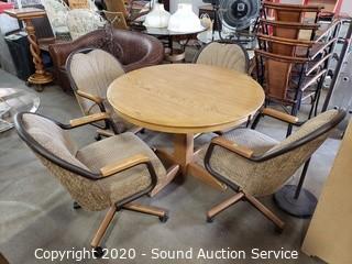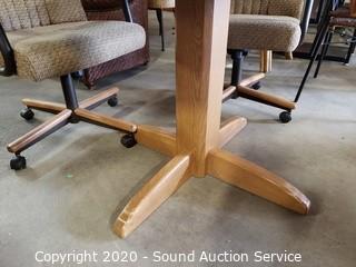 Lot #0022: Oak Dining Table w/4 Rolling Chairs