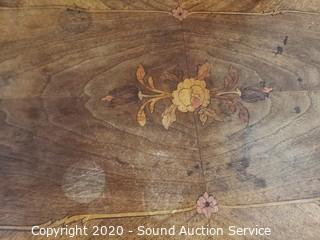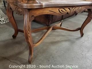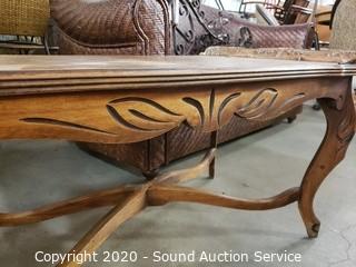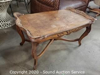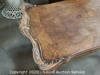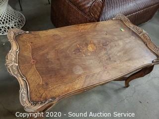 Lot #0011: Vtg. Inlaid Carved Mahogany Coffee Table