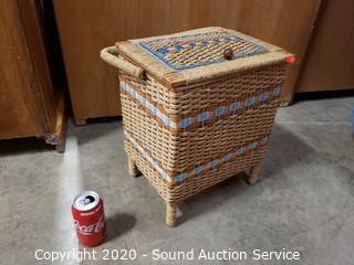 Lot #0006: Vtg. Woven Sewing Basket