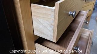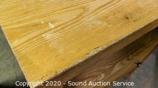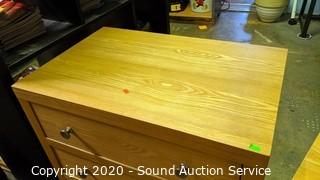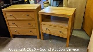 Lot Details: 2- tier with a single drawer, & 3 drawer. Solid wood and veneered particle board. The single drawer the finish pretty worn, other is in good condition. Matches the previous lot. 26" H x 24" W x 18" D & 28" H x 28" W x 18" D.