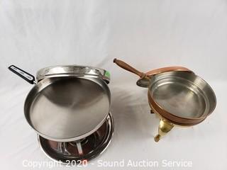 Lot Details: Copper/brass and stainless. 9" and 12" diameter.