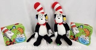 Lot #0129: 2 Talking Cat-in-the-Hat Plush Toys w/Books