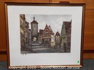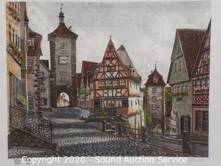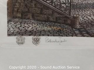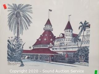 Lot Details: Includes "Plonlein" by Ernst Geissenorfer 23.5" x 27.5", limited edition "Hotel Del Cornado" by Nora Read dated 1991 #598/1000, comes with CoA, 22" x 25.5" and pier print by Mildred Judd, 19.5" x 26".