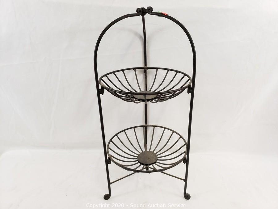 Lot #0260: 3pc Wrought Iron Tiered Fruit Baskets, Servers
