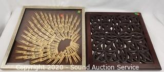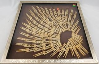Lot #0026: Carved Mirror Panel & Clothespin Shadowbox