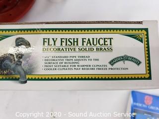 Lot #0042: Decorative Window Decor, Brass Faucet & Flag