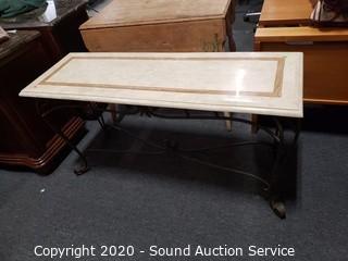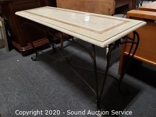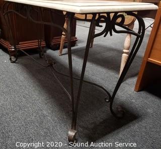 Lot #0009: Wrought Iron Marble Top Hall Table