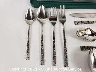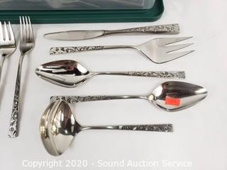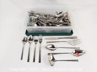 Lot Details: 19 lg. forks, 12 sm. forks, 17 lg. spoons, 25 sm. spoons, 16 butter knives, 11 serving pieces.
