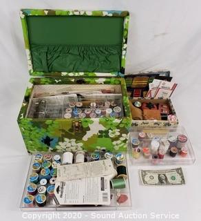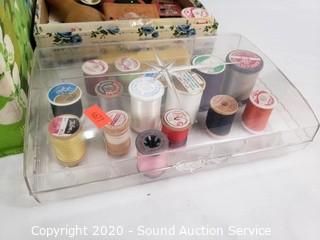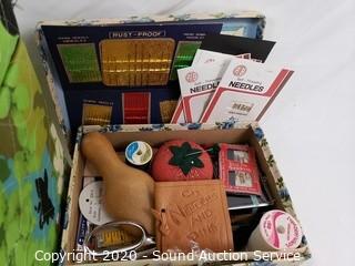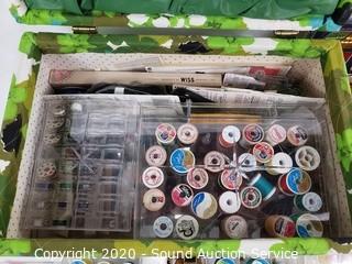 Lot Details: Includes thread, bobbins, needles, scissors and more. Largest is 9" x 15" x 9", smallest is 2" x 9" x 6.5".