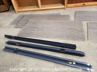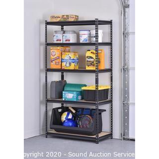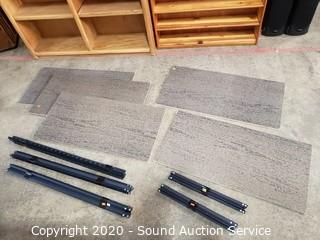 Lot Details: Particle board shelves. Approx. 6ft tall, 36" x 18" shelves.