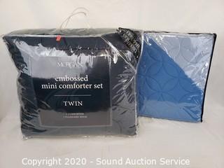Lot #0390: Blue Twin Down Alternative Comforter & Quit Set
