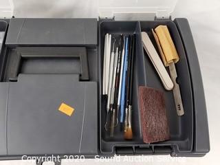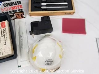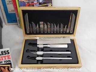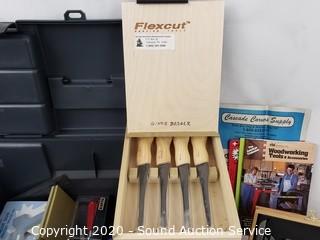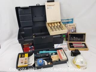 Lot Details: Includes X-Acto knives, paint brushes, scrapers, scalpel, sharpening stone, dust mask, Flex Cut Carving Tools, mini glue gun and more.