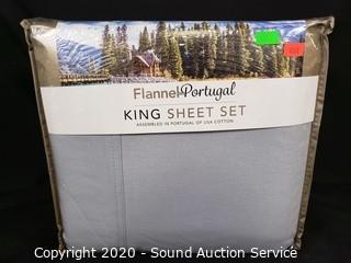 Lot #0373: New Flannel From Portugal 4pc King Sheet Set
