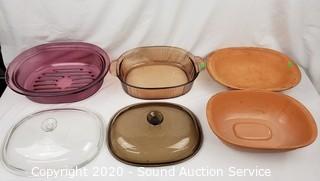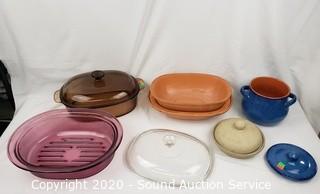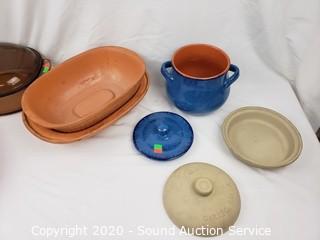 Lot #0095: Pyrex & Terracotta Roasters w/Crock