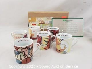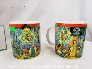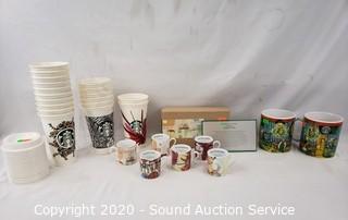 Lot Details: Includes 18 plastic cups with lids, (2) 16oz Night Cafe mugs and 6 Starbucks North American Conference demitasse mugs with box.