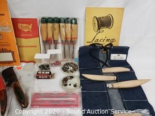 Lot #0188: Various Leather Crafting Tools & Scrap