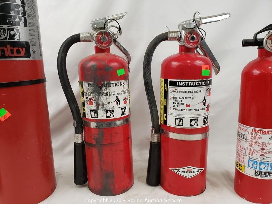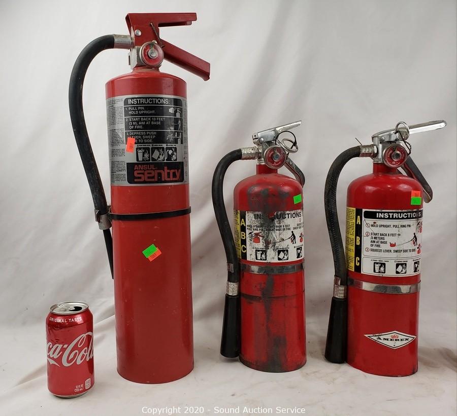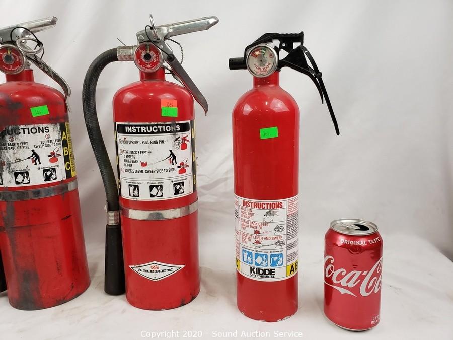 Lot Details: 22" H x 5" Dia. Includes Sentry Full 10lb, Amerex 5lb, other 5lb and Kiddie 3lb.
