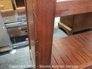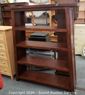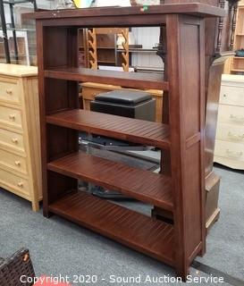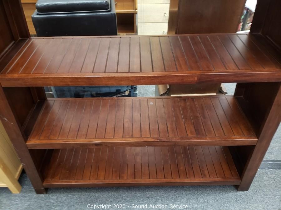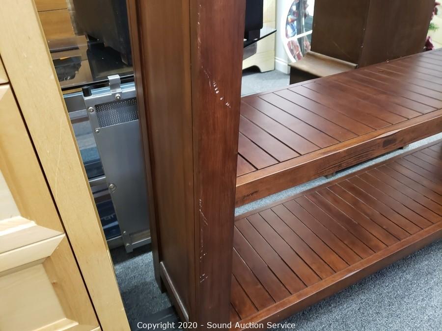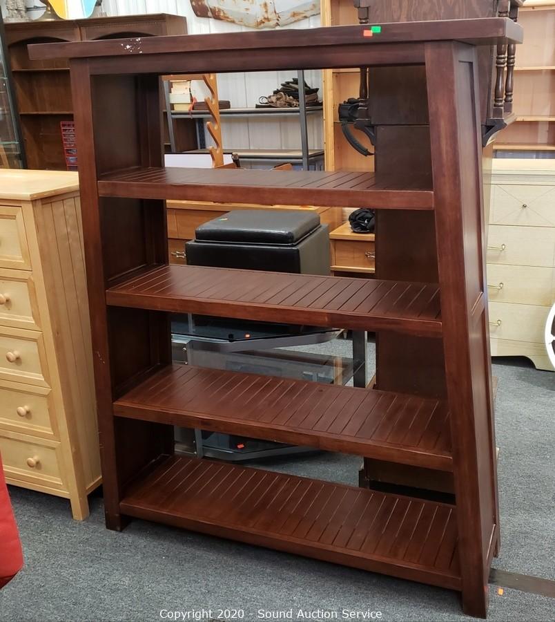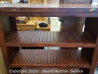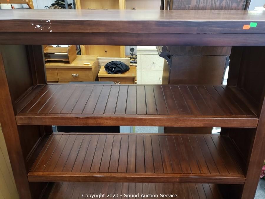 Lot Details: Some minor wear, in overall good condition. Shelves are fixed. 62" H x 50" x 50". Top tapers to 41".