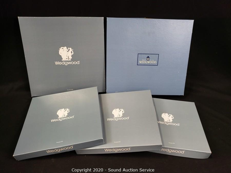 Lot Details: Includes Harrods white on blue, white on Portland round B & B, white on Portland 8" dancer, white on pale blue cupid and white on blue wedding day. 3 have original boxes.