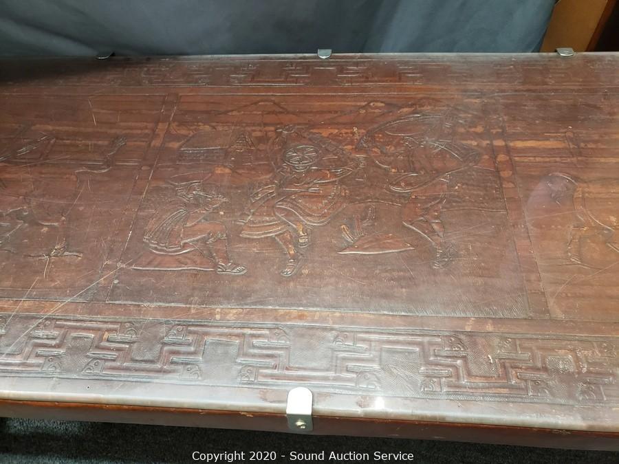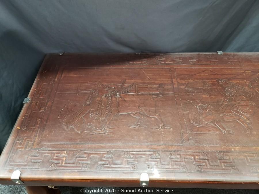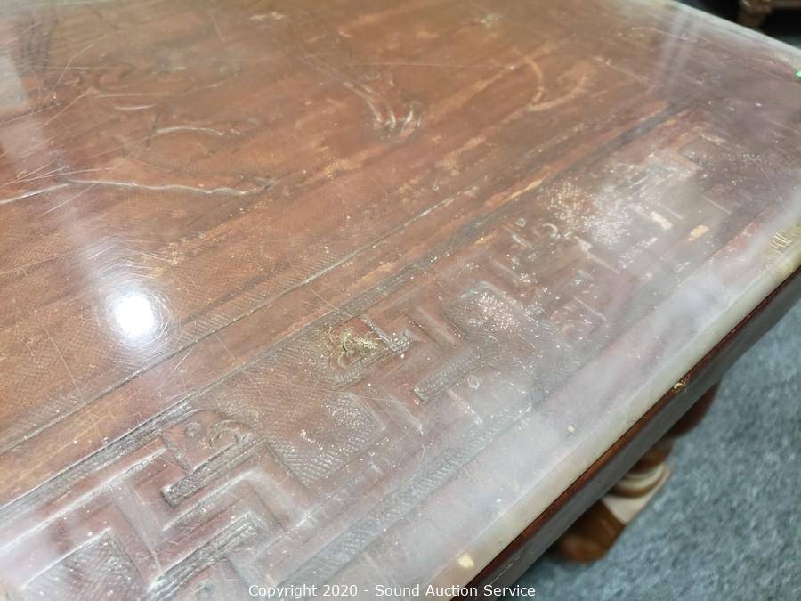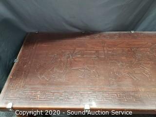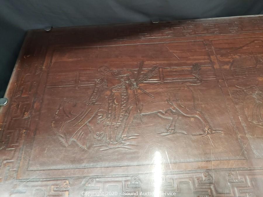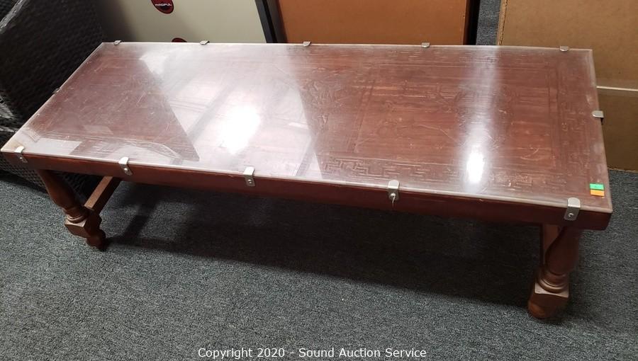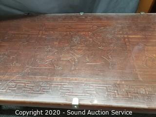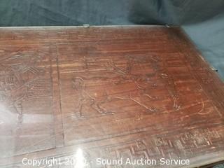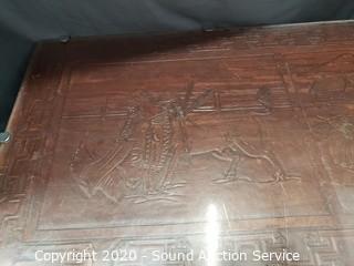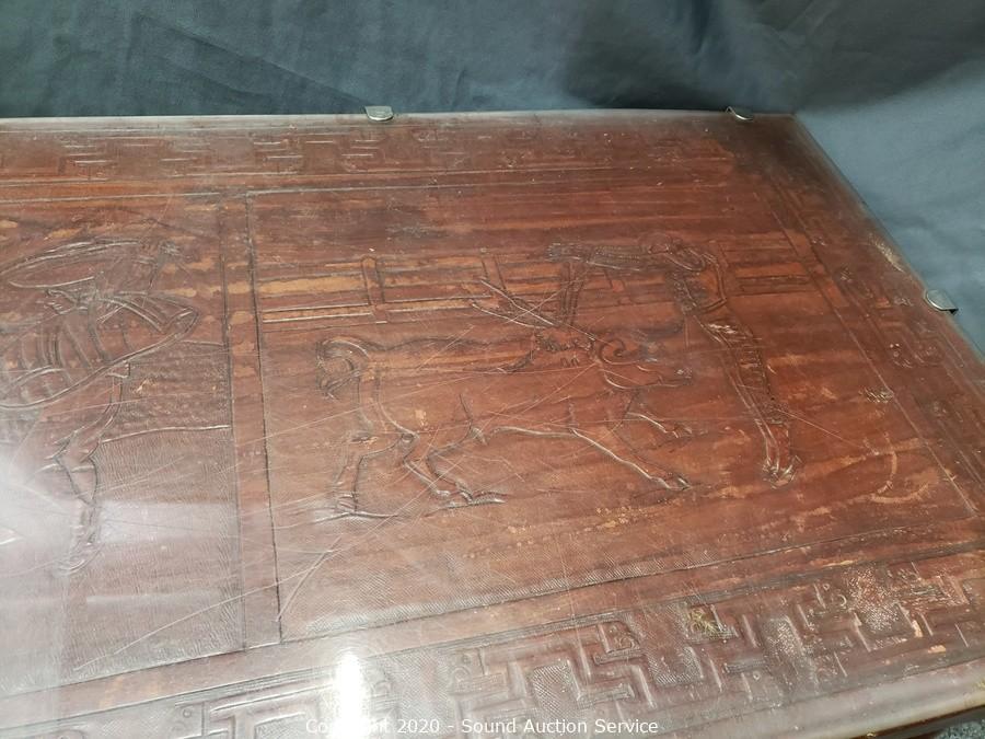 Lot #0012: Carved Matador Scene Glass Top Coffee