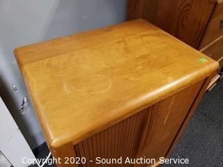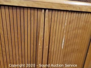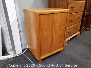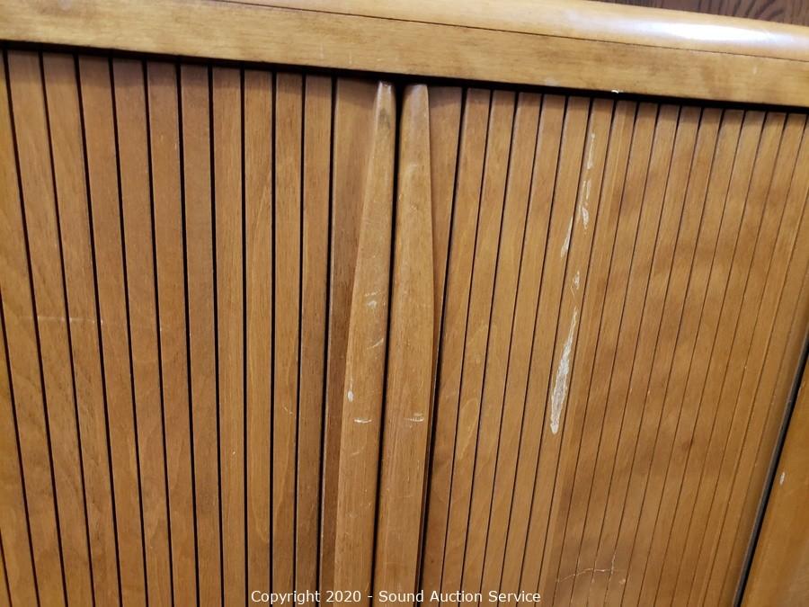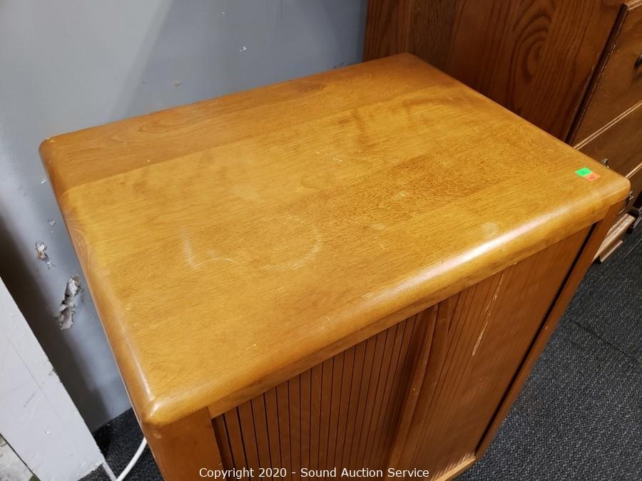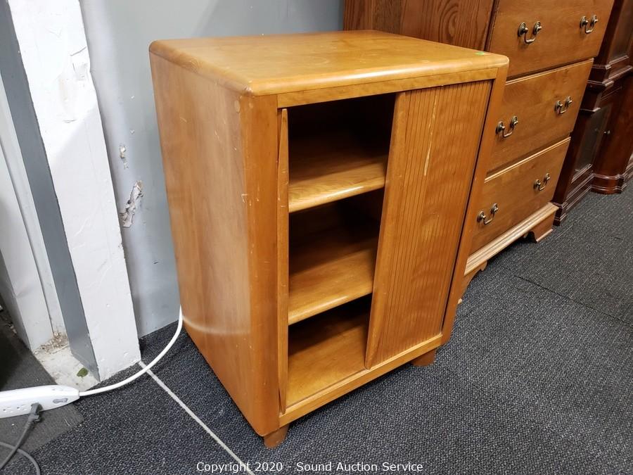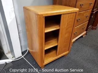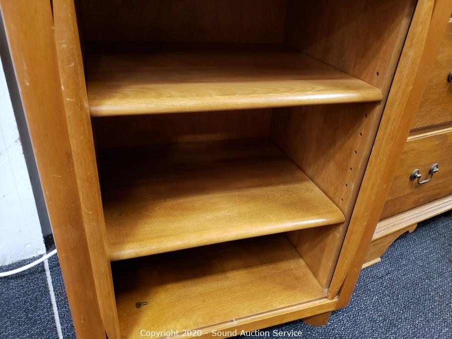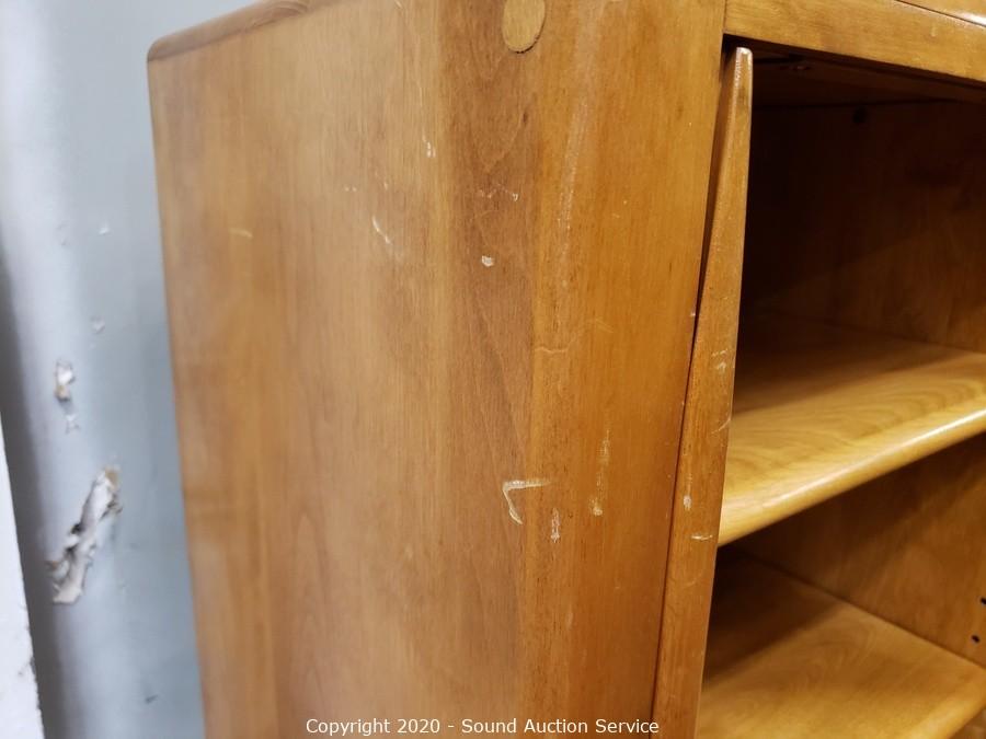 Lot Details: With 2 adjustable shelves, missing 1 pegs for the other shelf. Some wear to the finish.. 32" x 24" x 17".