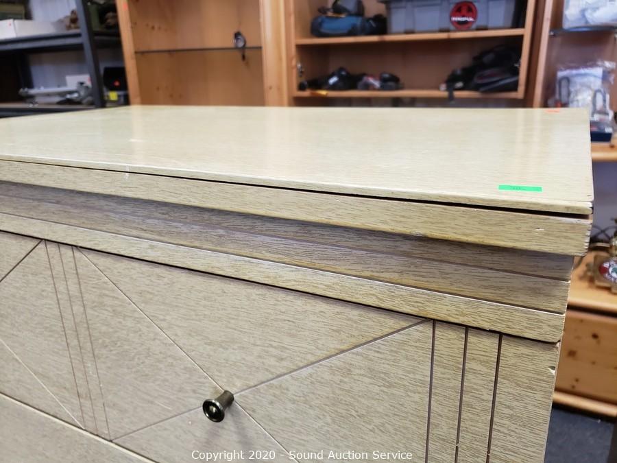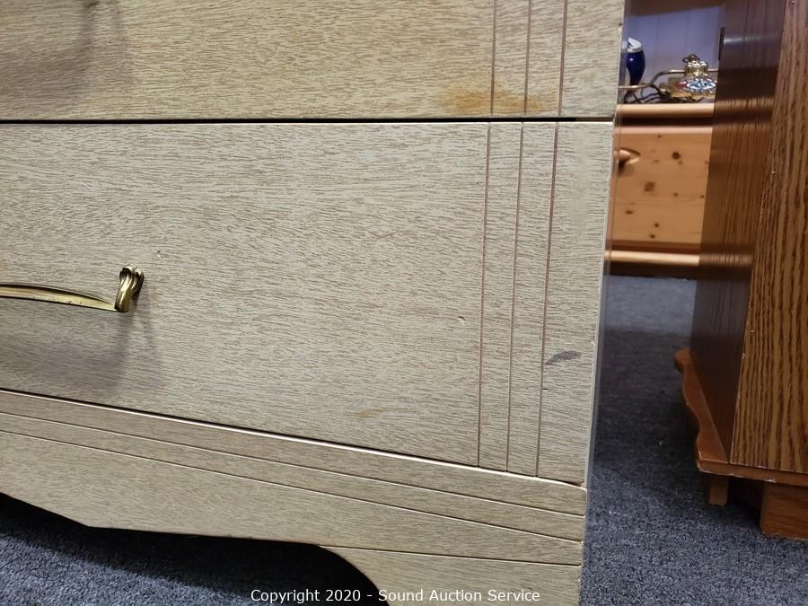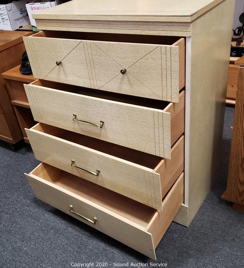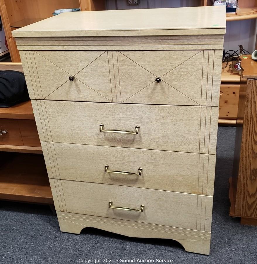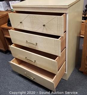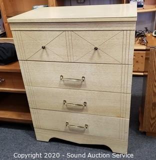 Lot #0018: Vtg. 4-Drawer Laminate Veneer Dresser