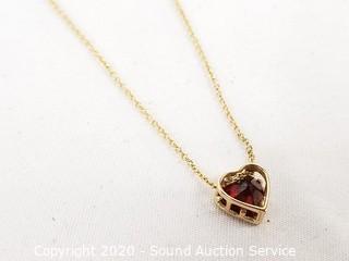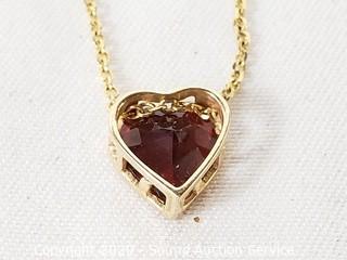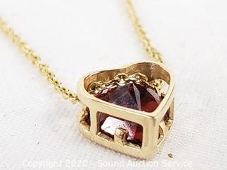 Lot #0242: 14K Gold Almandine / Garnet Set Heart Necklace