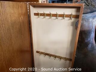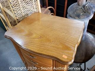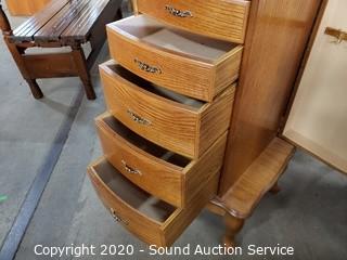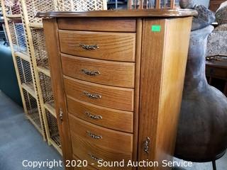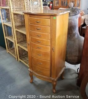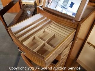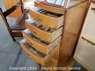 Lot #0027: 8-Drawer Oak Mirrored Top Jewelry Chest