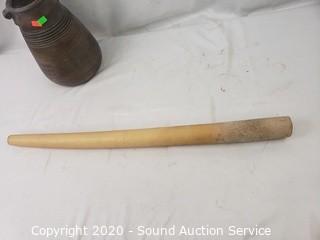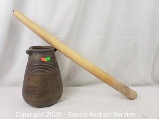 Lot Details: Includes Vtg. Brass Table Lamp and Pier 1 Imports Pottery Jug & Long Candle.