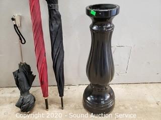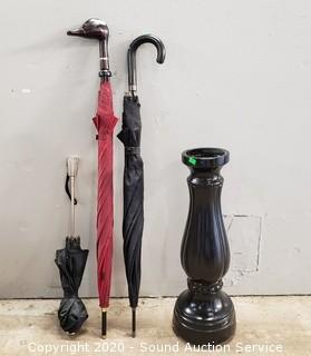 Lot #0028: Cane / Umbrella Stand w/3 Umbrellas