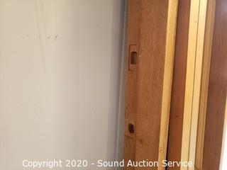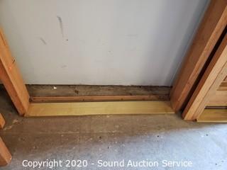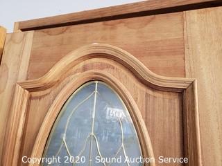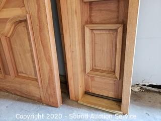 Lot Details: Comes with jamb, solid wood construction. 78" x 35-3/4" door, 81-1/8" x 38-5/8" x 4-7/8" jamb. Windows are 81-1/8" x 16-3/8" x 4-7/8". One is 16-1/2" wide. In excellent condition.