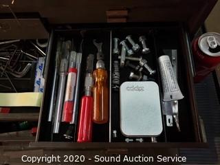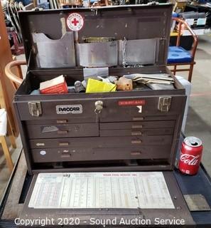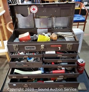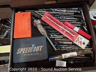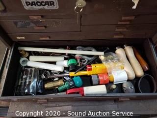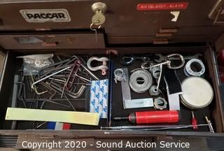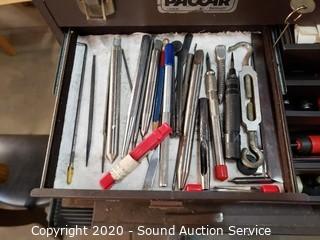 Lot Details: Includes plugs, files, punches, drill bits, screwdrivers, Allen wrenches, clevises and more. Locking, comes with key. Covered in stickers. 14" x 20" x 8.5".