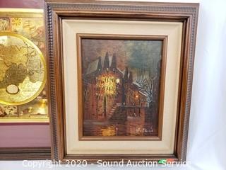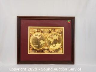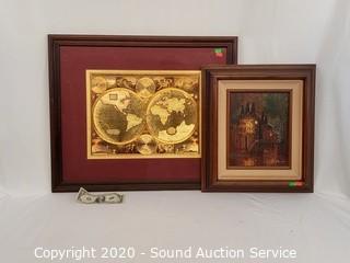 Lot #0192: Original Oil Painting & Gold Foil World Map