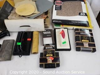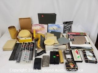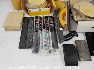 Lot #0055: Various Sand Paper, Sanding Blocks, Rasps & More