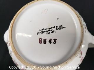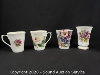 Lot Details: Includes Royal Patrician Staffordshire England (one is missing a handle), various Asian teacups, Allen Nelson Collection, Arthur Woods & Sons Staffordshire teapot, Hudson Middleton.