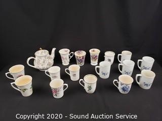Lot #0066: 16 English & Asian Fine China Cups & Teapot