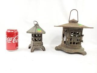 Lot #0098: 2 Asian Cast Iron Pagoda Lanterns