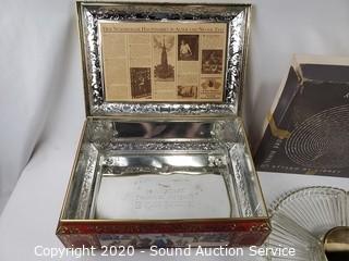 Lot Details: Server is Rainbow Collection by Libby, tin is 7" x 16" x 12", by Schmidt.