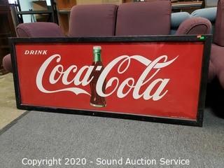 Lot #0025: Large Wood Framed Tin Coca Cola Advertisement Sign