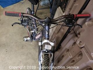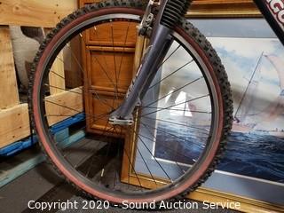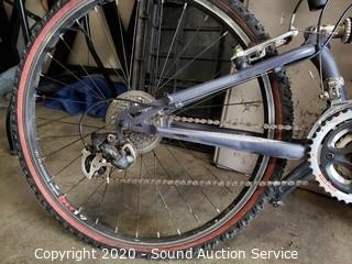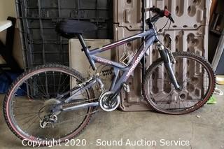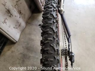 Lot Details: In great condition, cantilever brakes, front & rare suspension, 3pc crank, thumb shifter, bottle holder. Tires are flat, tubes may need replaced, good tread. 22" top cross bar, 18" from top of seat post to crank.