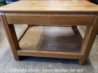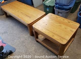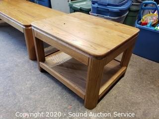 Lot #0328: Oak Coffee Table & 2-Tier Side Table Set