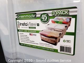 Lot #0391: 3 New Greenmade 45qt Clear Totes w/Lids